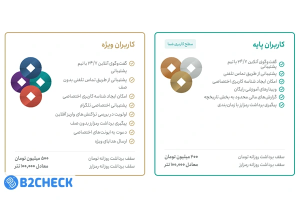 | کاربر VIP1 | بین ۱۰,۰۰۰ الی ۱۰۰,۰۰۰ تتر |