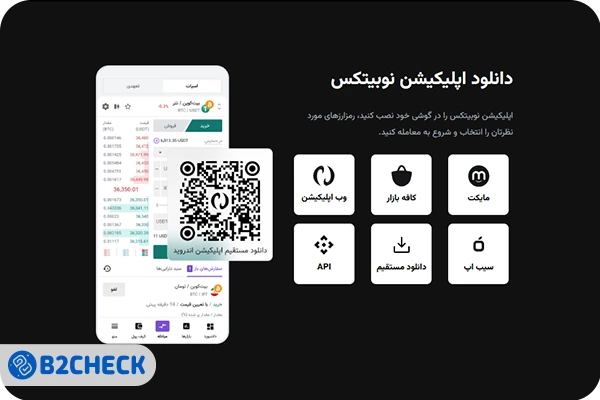 صرافی نوبیتکس برای کاربران اندروید و آی او اس نسخههای اختصاصی عرضه کرده است که از مارکتهای ایرانی میتوانند تهیه کنند یا اینکه به صورت مستقیم از سایت صرافی دانلود کنند. اپلیکیشن نوبیتکس به کاربران کمک میکند تا حساب معاملاتیشان را مدیریت کنند و در بازار ارز دیجیتال به ترید بپردازند. در ادامه لینک دانلود اپلیکیشن اندروید و آی او اس را برایتان قرار خواهیم داد.