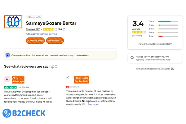 با بررسی سایت تراست پایلت هم میتوان متوجه شد که فعالیت سرمایه گذار برتر نسبت به سایر پراپ فرمها بیشتر است و ۲۷۷ تریدر حرفهای به این پراپ در سایت تراست پایلت امتیاز دادهاند. سرمایه گذار برتر از میان ۲۷۷ نفر موفق شده که نمره قابل قبول ۳.۴ از ۵ را دریافت کند.